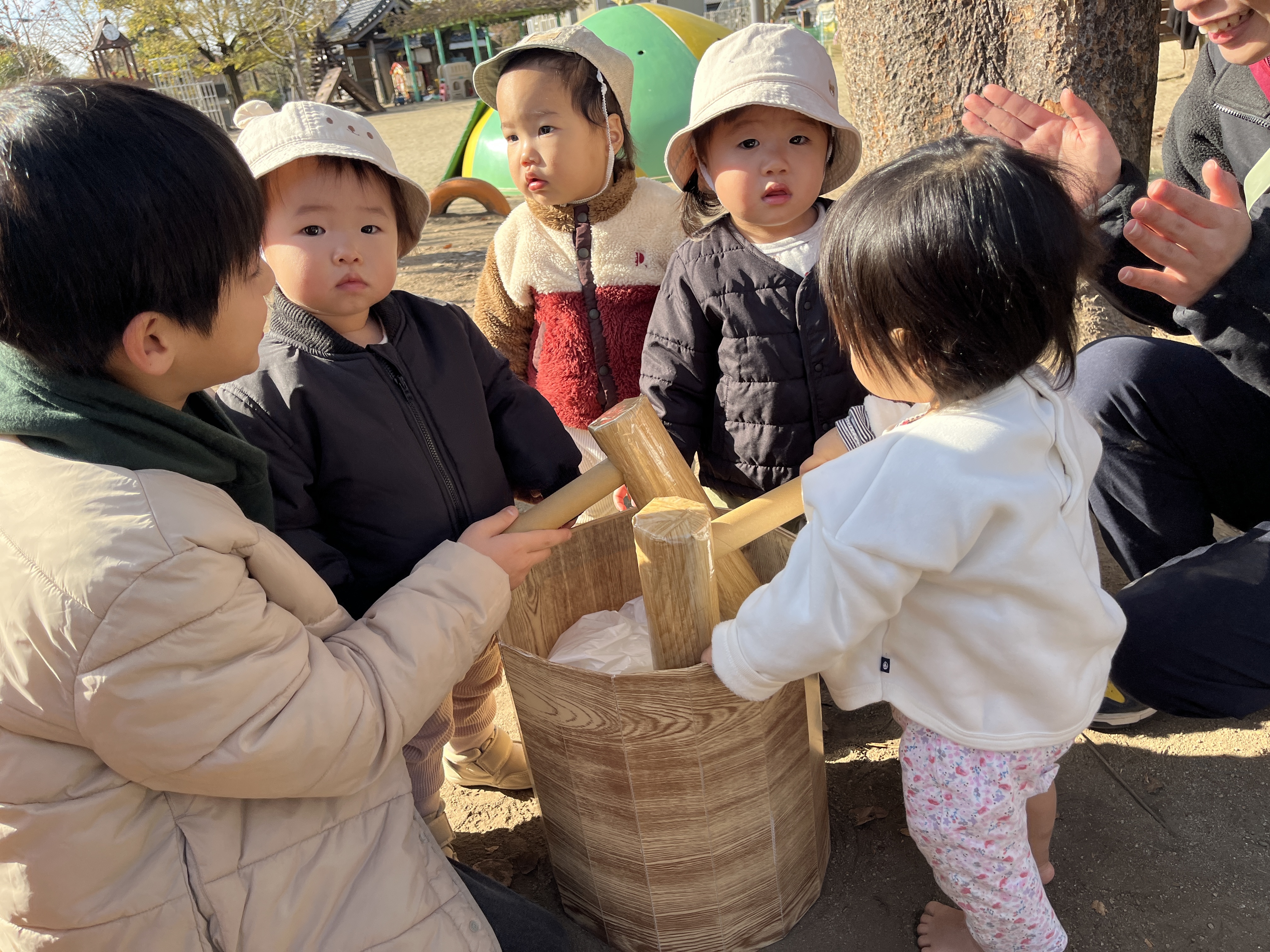 0・1歳児のお友達は手作りもちつきでペタペタ楽しんでいましたよ🥰
