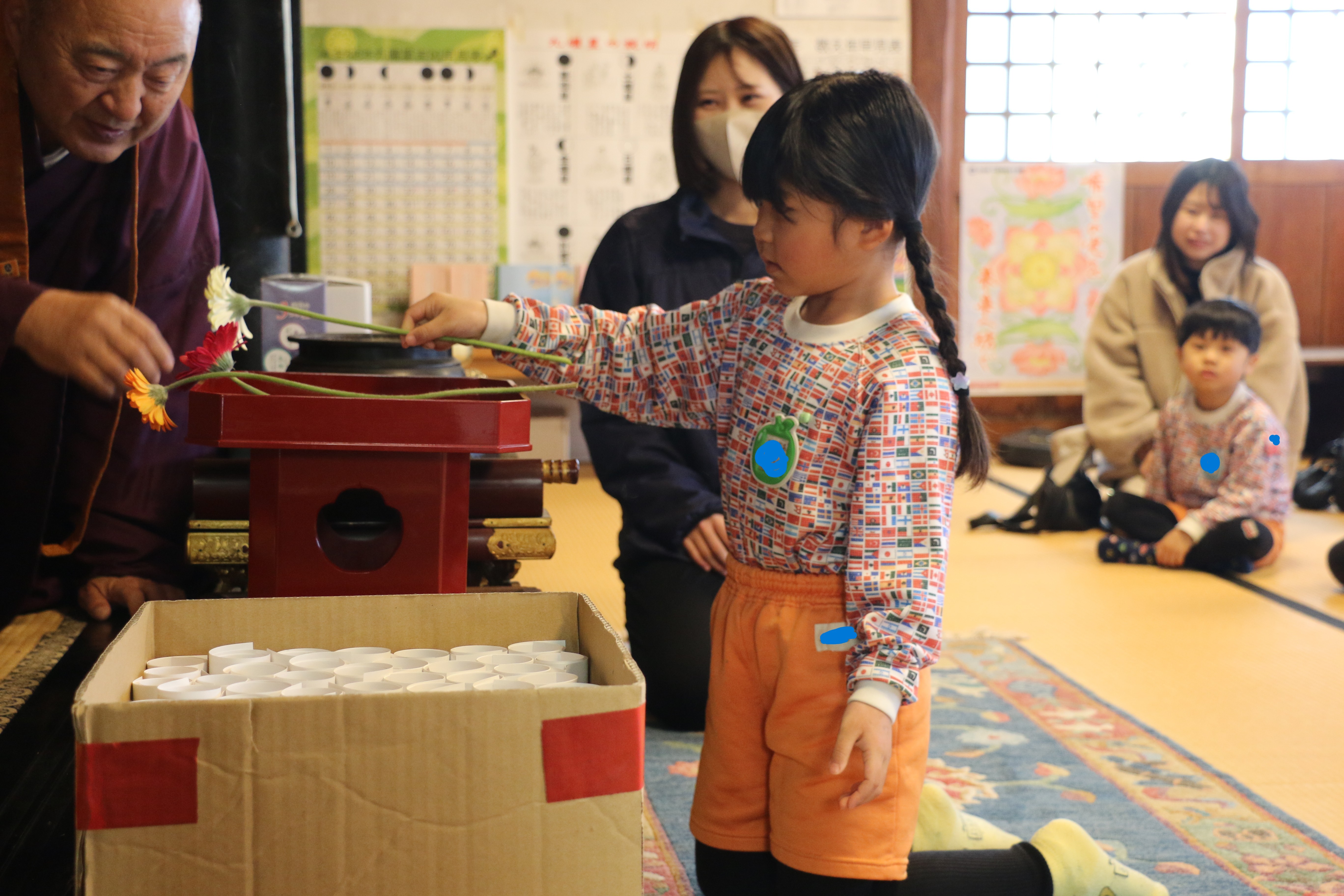 自分が持ってきたお花をお御堂に持っていき、ちょっぴり緊張しながらも「どうぞ良い子にしてください」と言うことが出来ました✨