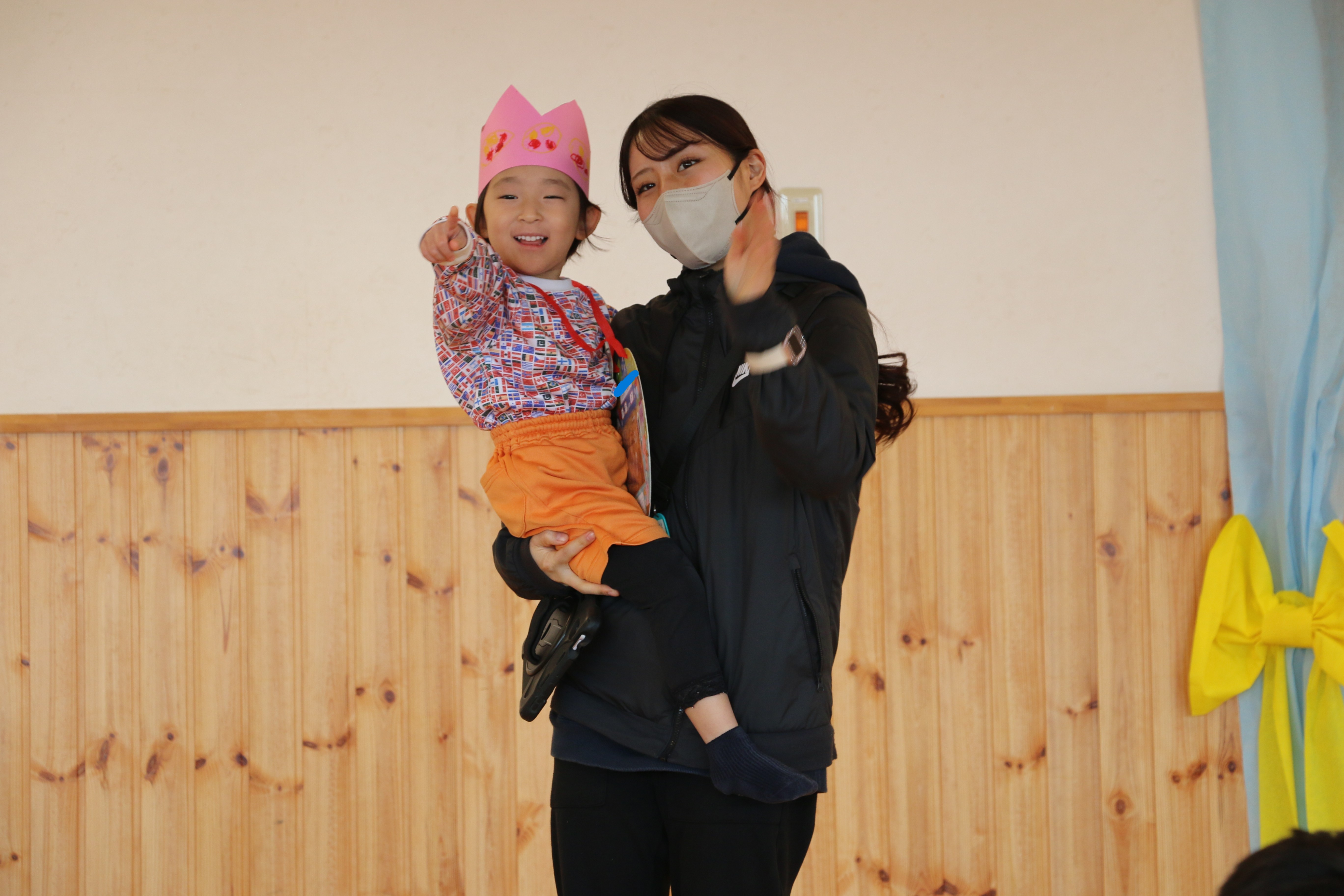 お遊戯室に行くと、みんなからのお歌と大きな拍手で迎えられ、にこにこ笑顔のお友達でした💗