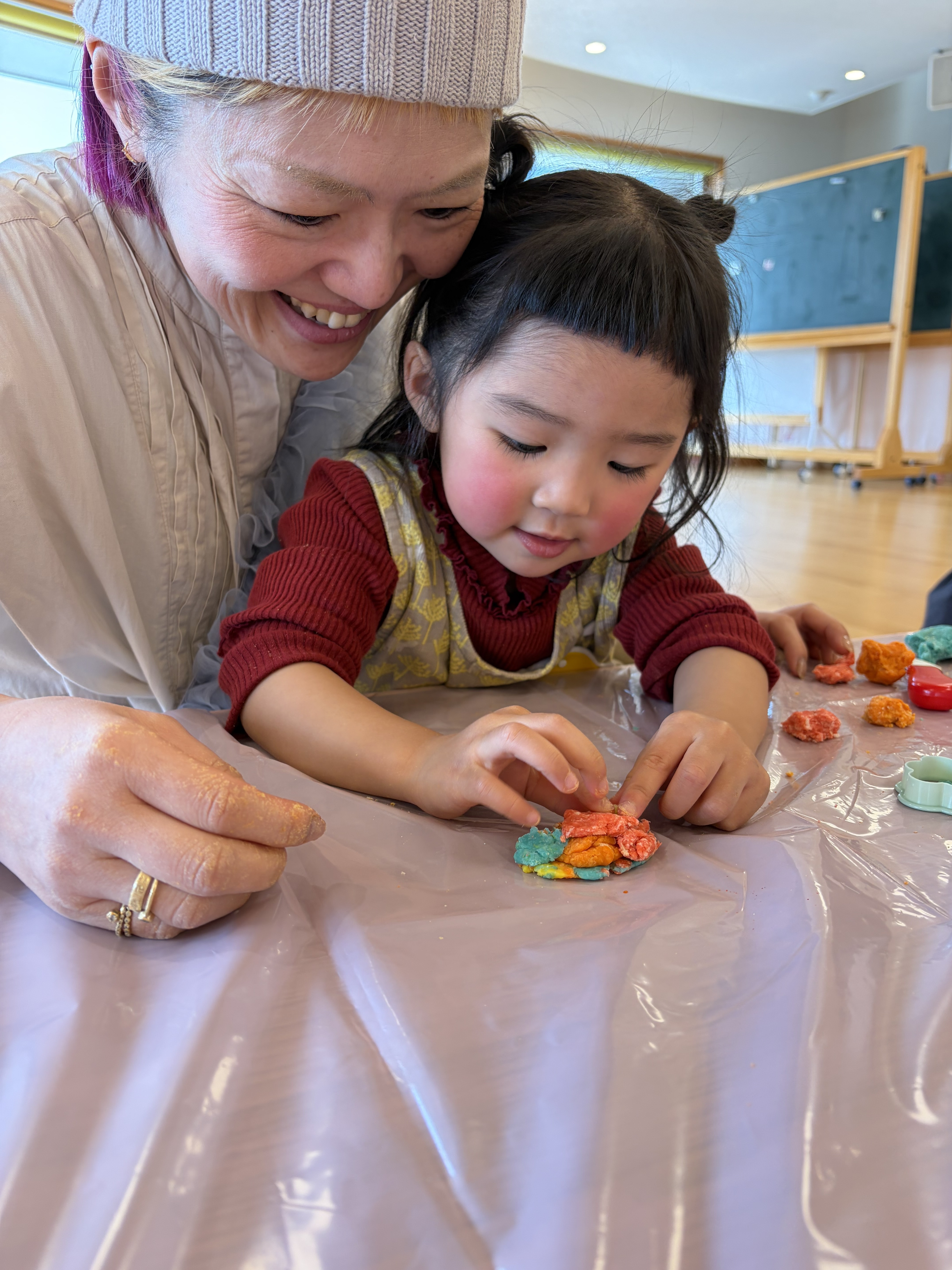 中には、初めて粘土遊びをしたお友達も!お母様も「こんなに粘土遊びが好きだったんだ!」とビックリするほど集中力を見せてくれました😊