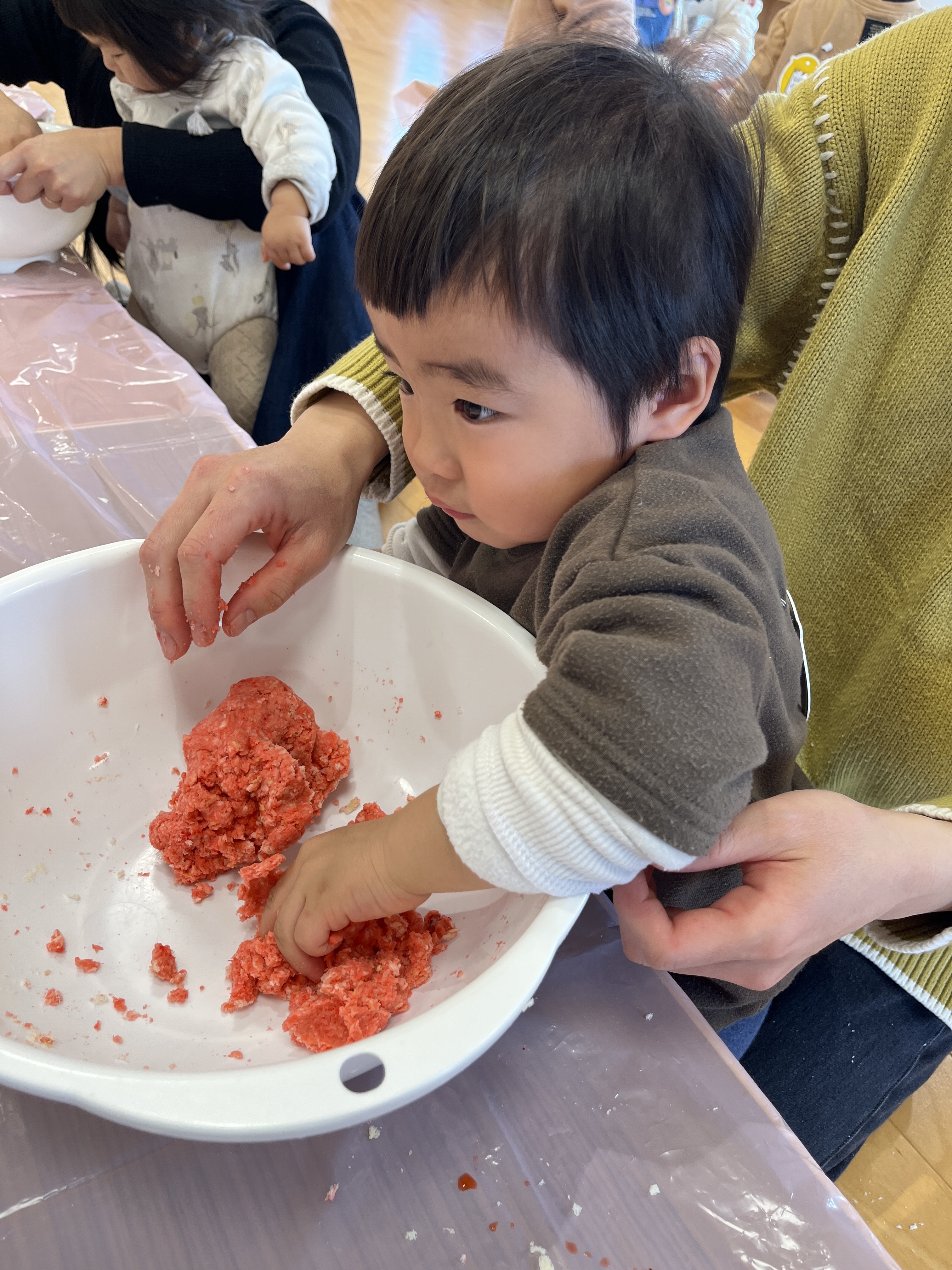 ▼1/16(金)2才児クラス『パン粉粘土遊び』