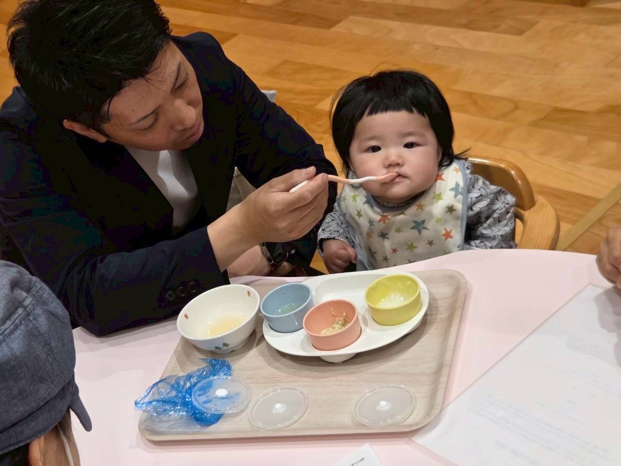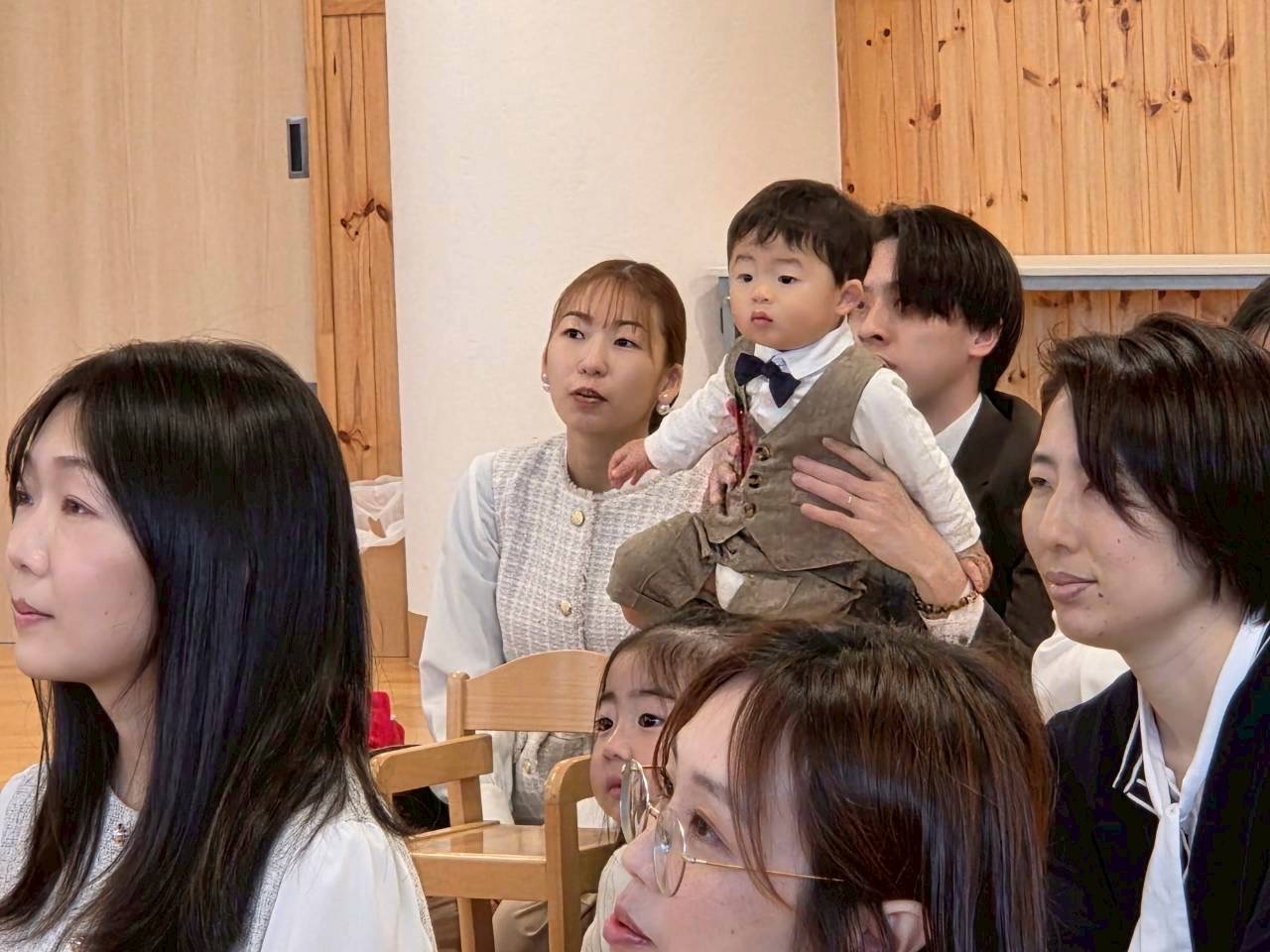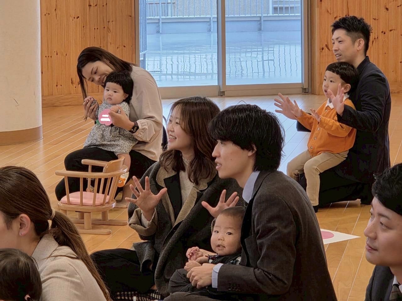 先生たちの手遊び歌や絵本読みを見て少し安心したようでした✨️