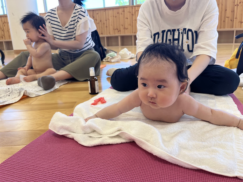 生活が安定する生後2ヶ月頃から、ベビーマッサージ教室の参加をお勧めしています。